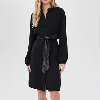 Casual vestidos pretos sólidos feminino botão de ouro cinto destacada estilos doces para fabricantes Ocasiões do dia-LCS Cosine coleção